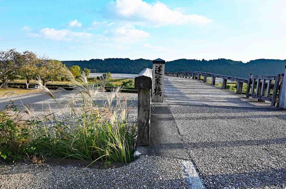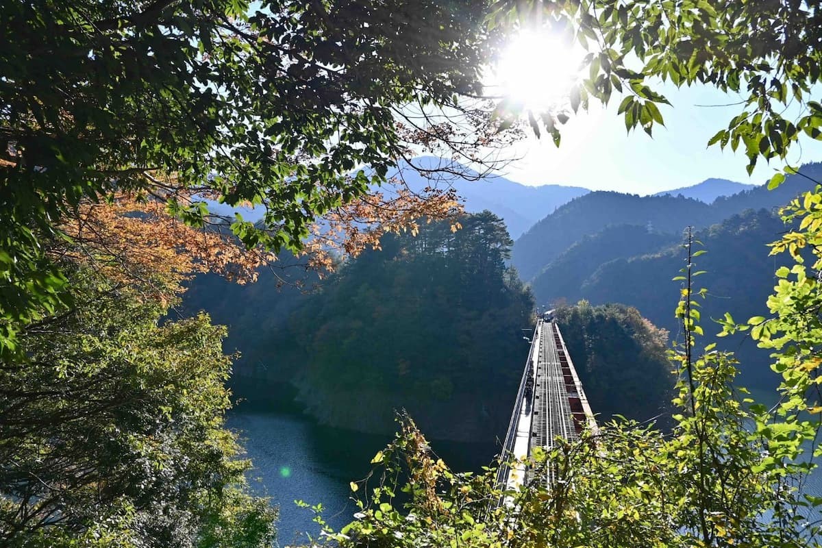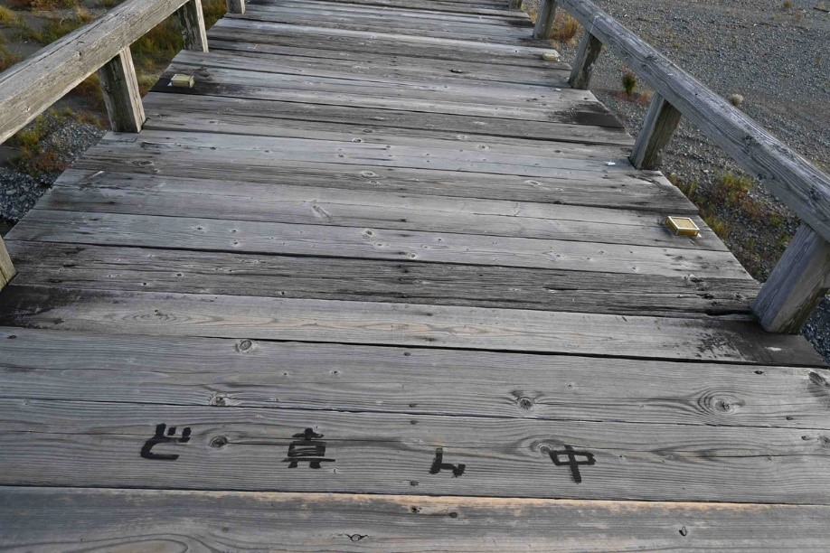 明治12年(1879年)に大井川の右岸にある茶園、牧之原台地開墾のために 渡って来ました。 1997年に「世界一の長さを誇る木造歩道橋」としてギネスに認定されたそうです。 二日目 秋色の寸又峡へ