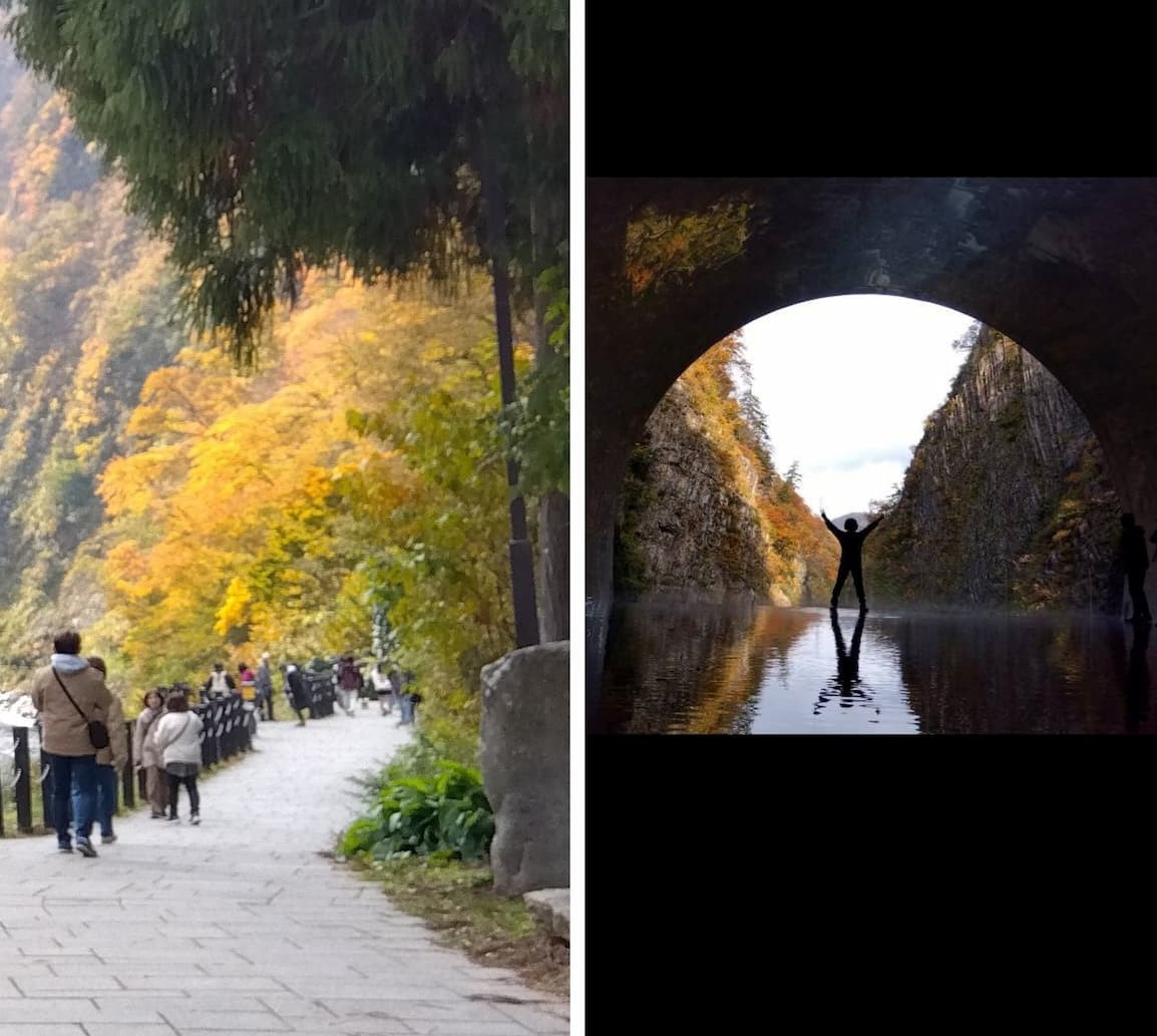 ② 清津峡・・・越後湯沢駅よりバスで30分位の所。 清流沿いに 紅葉を愛でながら「清津峡渓谷トンネル」入口を目指します。 全長750m先のトンネルの終点に パノラマステーションが有り 渓谷の景観を反転して映す"水盤鏡"が SNSでバズっています。 〈2〉愛知県 紅葉の時期になると シンボル的存在の「待月橋」が人々で埋め尽くされている画像が流れて 気持が削がれていましたが〜今回 名古屋泊で朝イチに到着 1番乗りで ゆったり散策出来ました。