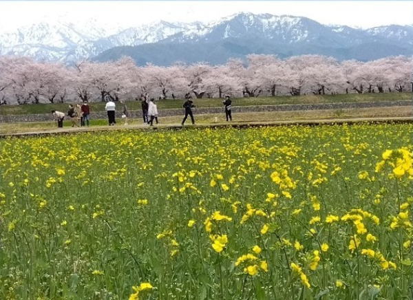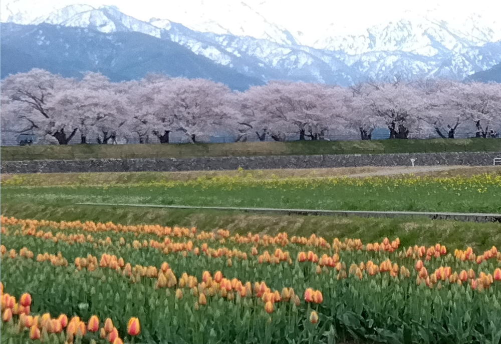 ″春の四重奏″って 何だろう?? 心奪われ この目で見たいと 「富山県あさひ舟川」へ 早速出掛けてみましたー! 4つの要素☆ 冠雪の北アルプス 約280本の桜並木 チューリップ 黄色い菜の花が とは言っても 植物の生育がピタリと同じように進むのは難しく 行った時は オレンジ色のチューリップが咲きほこり 舟川べり 約1200mにも及ぶ 桜のトンネルも圧巻でした。 木の根元に 赤いチューリップの花が撒かれていたのが印象的でした。 昨日満開だった花が 球根を育てる為に全部摘み取られ 肥料として撒かれていたのです。 花びらが分解されて有機肥料となり 土壌を活性化させるそうで ″お礼肥え″と呼ばれています。